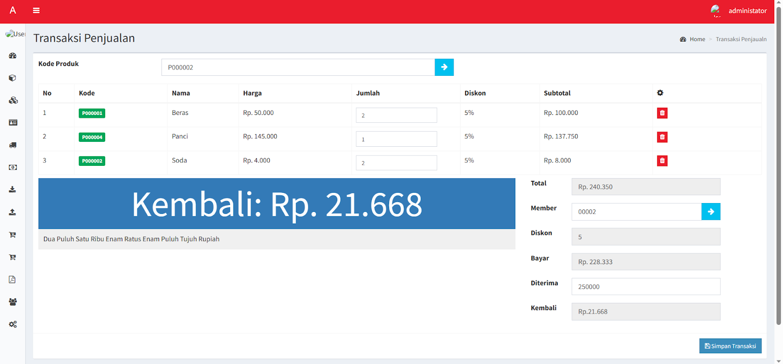 - Penjualan(id, id_member, total_barang, harga, diskon, id_user, tanggal_dibuat)